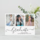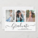 Black Script Graduate 4 Photo Collage Faire-part de graduation. Pour plus de personnalisation, cliquez sur le bouton "Customiser" et utilisez notre outil de conception pour modifier ce modèle.