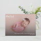 Joli faire-part de naissance photo moderne et simple, avec une photo de paysage horizontal fond de saignement. Au verso se trouve une autre photo dans un cadre avec des informations supplémentaires que vous pouvez remplacer par votre message personnalisé.