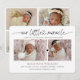 Carte de naissance chic et moderne avec 2 photos à l'avant et 4 photos à l'arrière de la carte. Écriture "notre petit miracle" lié par un cœur. Typographie moderne et classique.