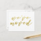 NewParkLane - Élégante carte postale, avec la citation 'Nous avons déménagé' en élégante typographie d'écriture en faux or.