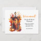 Cette faire-part de maison en aquarelle se déplace avec une porte rustique entourée de feuilles, de citrouilles et de lanternes. C'est parfait pour l'automne.