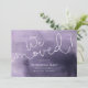 Cartes de faire-part mobiles personnalisées et abordables personnalisées avec la nouvelle adresse et les coordonnées de votre famille. Ce design chic et minimaliste est doté d'un arrière - plan d'aquarelle indigo et d'une police de caractères moderne en écriture manuscrite. Utilisez les outils de conception pour customiser le texte, modifier les polices et les couleurs ou ajouter vos propres photos pour créer une carte d'adresse unique pour votre famille ou votre entreprise.