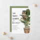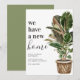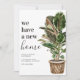 Carte d'annonce de déménagement moderne avec un fond blanc simple, une plante d'intérieur peinte à la main de style rustique, la phrase 'nous avons une nouvelle maison', et votre nouvelle adresse.