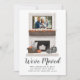 Annoncez votre déménagement et votre nouvelle adresse à vos amis et votre famille avec notre unique faire-part de cheminée Rustic Fall Farmhouse! Le faire-part mobile automnal présente votre photo de famille horizontale dans un cadre en bois foncé monté sur une cheminée en brique blanc cassé. Le manteau de cheminée est décoré d'une guirlande de feuilles d'automne aquarellées et de citrouilles blancs aux bougies blanches, de citrouilles en plaid de buffle noir et blanc et d'autres décors d'automne situés au foyer. Personnalisez la photo de famille en mouvement avec votre nom, adresse et autre texte. L'arrière offre un espace supplémentaire pour le texte et les images. La carte de faire-part mobile est parfaite pour la chute et Thanksgiving.