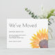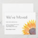 Cette carte d'annonce de déménagement est ornée d'un tournesol à l'aquarelle jaune et d'une typographie élégante.