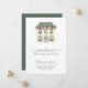 Nouvelle maison moderne pour les fêtes Carte de faire-part mobile de Noël avec une jolie maison festive décorée et une élégante écriture à la main sage script de typographie verte.++++++++++++++++++ Facile à personnaliser avec votre texte, nouvelle adresse et signature!