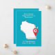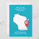 Faites savoir à vos proches votre grand déménagement avec cette carte "Nous avons déménagé ! Venez nous rendre visite dans le Wisconsin" ! Elle présente une carte stylisée de votre nouvel état avec un marqueur de carte mobile pointant vers votre nouvelle adresse. Cette carte rend le partage de votre nouvel emplacement facile et amusant. Le verso comprend un message personnalisé pour la famille et les amis, ainsi qu'une zone de texte personnalisable pour votre nom et votre numéro de téléphone - afin qu'ils sachent toujours comment vous joindre. Que vous les invitiez à vous rendre visite ou que vous restiez simplement en contact, cette carte est le moyen idéal pour partager votre nouvelle excitante !