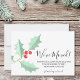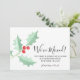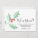 Elle est ornée de houx et de baies aquarellées de teintes rouges et vertes et d'une typographie script.