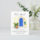 Faites savoir à votre famille et à vos amis que vous avez une nouvelle maison avec ces cartes de faire-part modernes et élégantes. Le design comprend une porte d'entrée bleu aquarelle agrémentée de verdure. Personnalisez avec votre nom et votre nouvelle adresse. L'envers est coordonné dans un bleu vif