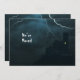 Montre la silhouette d'un château lors d'une nuit sombre orageuse avec éclairs, chauves-souris, fenêtre éclairée, et "Nous avons bougé." Customisez et personnalisez le texte de votre nouvelle adresse et de vos coordonnées. Une façon amusante, éffrayante, gothique, effrayante, amusante et humoristique d'annoncer votre déménagement / changement d'adresse. Pour Septembre, Octobre, Halloween, Novembre, Automne ou n'importe quelle heure de l'année.