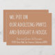 Annonce : Nous avons mis nos pantalons d'adultes et avons acheté une maison