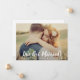 Annoncez votre mariage avec cette annonce de mariage photo à l'écriture manuscrite audacieuse avec "Nous sommes mariés !" en lettrage blanc avec un accent de cœur sur votre photo préférée. Les noms et la date du mariage sont affichés bien en vue en dessous. Le verso comprend une deuxième photo et une lettre personnalisable qui raconte l'histoire de votre cérémonie privée. Remplacez les deux photos et modifiez tout le texte pour créer un souvenir que vos proches chériront.
