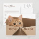 Faites savoir à tout le monde que vous avez trouvé une nouvelle maison et donnez-leur votre nouvelle adresse. Joli chat chaton orange dans une boîte