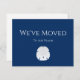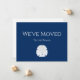 Nautique Nous avons Déménagé Plage Marine Blue Moving carte faire-part. Avec une simple typographie et un design de sable dollar, le lettrage noir et blanc peut être personnalisé avec vos informations. Idéal pour faire connaître votre nouvelle maison à vos proches.