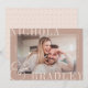 Partagez la nouvelle de vos fiançailles avec ces cartes d'annonce élégantes comportant une photo horizontale ou paysage avec vos noms alignés aux coins en lettrage classique, se chevauchant légèrement sur votre photo et s'étendant au-delà des bords du papier pour un look moderne. Personnalisez avec deux lignes de texte personnalisé le long des côtés pour des détails supplémentaires ou votre site web de mariage.