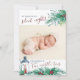 Deux cartes de Faire-part de naissance Photo Holiday que vous pouvez personnaliser avec le nom du bébé, les statistiques de naissance, vos souhaits de noël et les noms. Combinant plaisir festif et aquarelle traditionnelle, c'est un design délicat et élégant pour encadrer les photos de votre bébé. Le texte dit : "Nous avons échangé dans nos nuits silencieuses pour un paquet de joie avec dix orteils tordus" dans un script élégant et la typographie moderne. Le thème est complété par des guirlandes de mistletoe, des plantes saints, des sprigs de pin et une lanterne éclairée aux bougies. Le dos de la carte indique "meilleur cadeau jamais", avec votre deuxième photo et messages personnalisés.