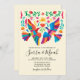 Faire-part de mariage vibrant et coloré avec un thème inspiré du Mexique et un fond jaune clair.
