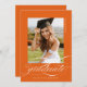 Faire-part Orange Moderne Élégant Script Photo Graduation