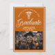 Cette école de médecine personnalisée orange pour une infirmière ou un médecin présente une typographie blanche classe sous un caducée médical et votre nom de collège pour la classe de 2024. Customisez avec votre année d'obtention de diplôme sous l'élégante calligraphie pour une grande carte universitaire personnalisée.