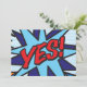 Faites votre annonce au monde avec un OUI ! Ajoutez votre propre message spécial. Thème moderne et amusant de pop art de bande dessinée, parfait pour les mariages, les fêtes de fiançailles, les baby showers, les baptêmes, les fêtes de fiançailles, les célébrations d'anniversaire, les remises de diplômes, les fêtes d'anniversaire et d'autres événements spéciaux tout au long de l'année ! Un design cool, tendance et amusant qui met le boum zap pow dans votre journée. Pourquoi ne pas ajouter un peu de zap pow et de boum dans le monde aujourd'hui ! Conçu par ComicBookPop© sur www.zazzle.com/comicbookpop*
