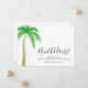 This moving announcement card features a watercolor palm tree and stylish script typography. It is easily customizable. Original Watercolor © Michele Davies.