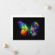 Arc en ciel, papillon monarque lumineux, artistiquement peint avec bouquet de roses irisés, lumineux, lumineux sur arrière - plan noir. Papillon arc-en-ciel.