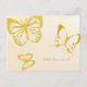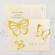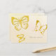 Papillon nouvelle adresse carte postale pour la femme célibataire. Papillons dorés sur le devant avec le texte personnalisé avant et arrière en gris, police de script décontracté.