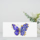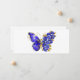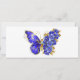Bijoux, bleu, saphir, papillon fleur scintillant avec aile décorée de fleurs bleues précieuses avec feuilles dorées sur fond blanc.