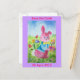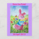 Pâques Enregistrer la carte postale Date. Cette carte est décorée d'un tableau d'un lapin ramassant des fleurs.