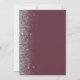 Le bord gauche de cet élégant mariage moderne, à l'exception de la carte de date, comporte une bordure en faux parties scintillant argent. Le texte personnalisable associe écriture gris argenté, copperplate et polices italiques sur un arrière - plan bordeaux foncé. L'envers présente un design bordeaux et argenté assorti.