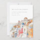 Envoyez ce faire-part coloré à l'aquarelle rose et orange paysage méditerranéen avec les détails de votre mariage ci-dessus en police serif grise. Ajoutez votre photo de mariage préférée au verso et un court message.