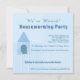 Le design comprend des illustrations d'une maison blanche clôturée bleue ainsi que des champs de typographie personnalisables pour les détails et l'invitation de la fête de réchauffage. La photo représente la beauté douce des fleurs printanières. Lieu : Illinois, USA © Wafa Y. Dahdal - Tous droits réservés.