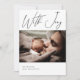 Cette carte faire-part de naissance photo simple et moderne présente un design contemporain et est facilement personnalisable. Dans l'outil de conception vous pouvez changer la couleur de la police de calligraphie "With Joy" en bleu, rose ou toute autre couleur. Sur le devant, vous pouvez remplacer la photo par l'une des vôtres. Le texte est entièrement personnalisable. Remplacez le texte de l'espace réservé et supprimez simplement ce dont vous n'avez pas besoin, modifiez la police et les couleurs. Faites de ce modèle faire-part de naissance contemporain le vôtre !