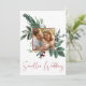 Si les circonstances exigent que vous réduisiez la taille de votre mariage, vous pouvez informer votre liste de invités élargie d'origine pendant cette période des fêtes avec cette élégante annonce de mariage plus intime mettant en vedette votre photo dans un cadre aquarelle de verdure de Noël et « Mariage plus intime » écrit dans un script rouge élégant. Vous pouvez facilement personnaliser le message de réduction de mariage avec plus de détails et ajouter toute diffusion en direct de la cérémonie, les futures célébrations et les informations sur le site web du mariage.