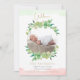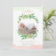 Vos annonces de naissance seront adorables avec cette photo moderne de votre bébé. Ce design est composé d'aquarelle tendance, couronne de feuilles de verdure eucalyptus entourant votre photo, et joli, rose et vert menthe, aquarelle, mince, coups de pinceau en haut et en bas. Un papier doré "Bienvenue" en haut, et des modèles pour vous en dessous.