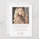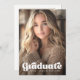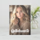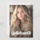 Blanc ou n'importe quel faire-part de graduation couleur avec une photo complète sur le devant avec le texte blanc superposé "diplômé" dans un avant de style rétro. Ci-dessous est un modèle classé pour le nom et l'année du diplômé ou autre texte personnalisé. Message personnalisé et photo supplémentaire au dos.