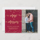 Gold Burgundy Photo Christmas Pregnancy Announcement Cards. Expecting parents! Modern gold swirly hand lettered typography script "the more the merrier" card to share your happy news with family and friends in the holiday season. Features above and the bottom gold confetti frame on burgundy background. You can personalize the design by replacing the simple texts and vertical photo. #3351 If you need help or matching items, please contact to me!