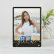 3 Photo Collage Graduation Faire-part for High School or College Graduation Ceremony détails et Open House Invitation présente un script de calligraphie moderne et audacieux avec sans-serif Class de 2023 police et place sur le dos pour 2 photos senior supplémentaires ou photos de voyage sur un arrière - plan minimaliste noir et or avec coins arrondis en option.