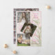 Personalized 4 photo collage graduation party announcement with lovely pink fonts. Simple and sweet. Add your special photos to create your own personal announcement. You can change black and white photos to color by accessing Effects in the design tool and then scroll down to color selections of photos. Choose what you prefer to customize. Other colors and styles available. Beautiful pink tulips on a rustic pink faux wood background.
