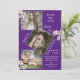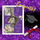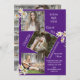 Personnalisé 4 photo collage graduation faire-part avec un joli arrière - plan violet. Accenté de marguerites blanches d'aquarelle douce. Simple et doux. Ajoutez vos photos spéciales pour créer votre propre faire-part. Autres couleurs et styles disponibles.