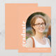 Une simple carte d'annonce de diplôme blanche pêche moderne pour célébrer le nouveau diplômé du lycée. Le design présente votre photo préférée encadrée dans une arche avec une typographie audacieuse. Personnalisez avec votre nom et lycée.