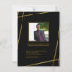 Faire-part/Invitation de la photo de diplôme. Cadre géométrique asymétrique moderne dans un faux film doré à la mode sur une photo à fond saigné. Disposition de style entièrement polyvalente. Réglez facilement la taille et l'emplacement de la photo et du cadre, ou modifiez le style de police et l'emplacement de tous les champs de texte personnalisés en mode Personnaliser avancée. Le filtre de dégradé facultatif est inclus pour l'affichage de contraste du texte léger, mais il peut être supprimé ou modifié en mode avancé.