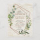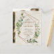 Moderne et tendance, ce design d'invitation de mariage en forme de carte postale présente un motif géométrique en cuivre faux, orné d'eucalyptus aquarelle sur une texture d'écorce de bouleau blanc faux. Les noms des mariés et certains détails du mariage sont dans une couleur cuivre assortie, et le dos de la carte postale présente votre photo de fiançailles verticale préférée. Copyright Elegant Invites. Tous droits réservés.