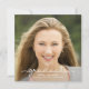 Trendy feminine manuscrit texte superposé avec photo - montré au format carte plat carré. Ajoutez votre photo et votre texte personnalisé, ou choisissez "Customiser" pour ajouter des informations supplémentaires sur le dos, modifier la taille, la police, la couleur arrière - plan ou la mise en page de l'invitation de partie.