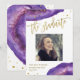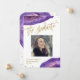 Ces invitations de fête de remise de diplôme élégantes et modernes présentent des pierres de géode violette aquarelle, avec une typographie or faux et des éclaboussures. Ajoutez votre photo et personnalisez également le verso avec les informations de votre fête.