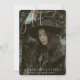 Recouvrement de photo blanc scénarisé "diplômé", faire-part d'obtention d'un diplôme de photographie unique. Arrière des caractéristiques de la carte, faux motif de ventilateur style Art Déco sur la coordination couleur bleu marine arrière - plan.