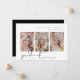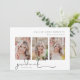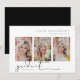 Script de signature, 3 cliché photo, faire-part de graduation. Caractéristiques, 3 photos verticales de portrait sur le devant et support en noir massif.