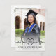 Cette carte d'annonce de remise de diplôme sur le thème des battements de cœur présente un design audacieux avec un fond de photo et un dégradé blanc en bas. Le bas met en valeur une illustration de chapeau de diplômé, suivie du nom du diplômé, du nom de l'école et de la date. Le design moderne mais intemporel combine le ton de célébration du chapeau de diplômé avec des détails personnalisés, ce qui le rend parfait pour annoncer la réussite de tout diplômé.
