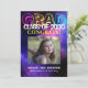 Un néon tendance brille dans la carte colorée foncée du faire-part du collège de 8ème année avec photo personnalisée.