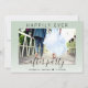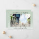 Faire part élégant de couleur vert sauge pour elopement ou mariage privé et invitation de réception ou de fête de célébration. Le recto présente votre photo, "Happily Ever After Party" dans une typographie simple et un script tendance avec fioritures, ainsi que vos prénoms et date de mariage. Au verso, vous pouvez personnaliser votre annonce de mariage et votre invitation avec plus de détails et ajouter vos noms dans un script ressemblant à une signature.